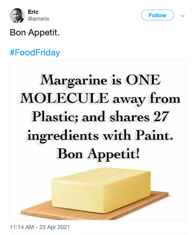 Margarine is but ONE MOLECULE away from being PLASTIC and shares 27 ingredients with.