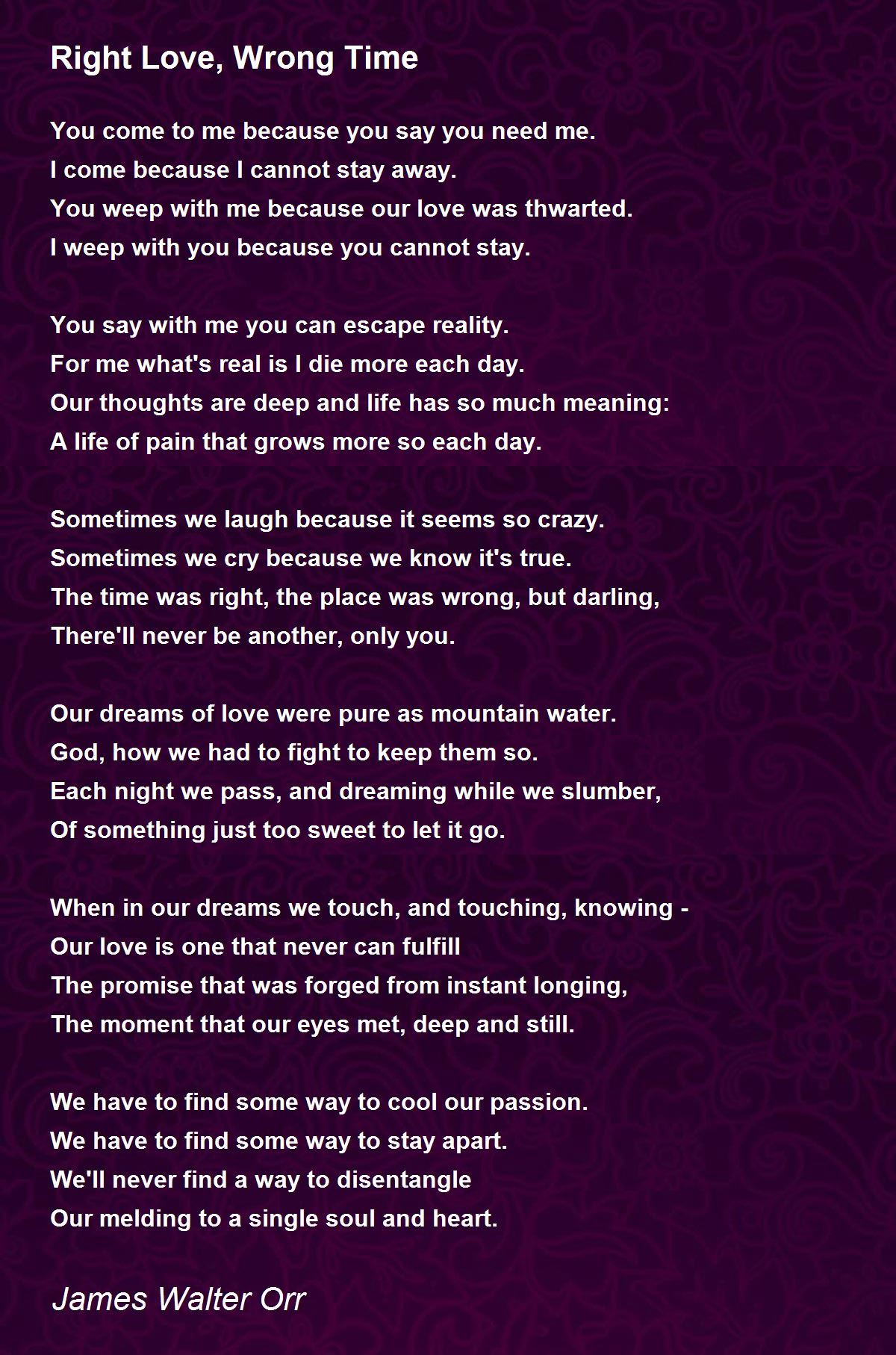 Right Person Wrong Time Poem